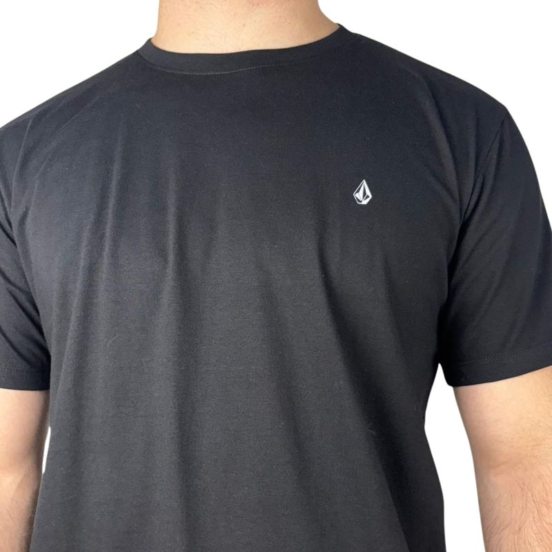 Camiseta Volcom Stone Blanks Preta. Possui modelagem regular, silk frontal, assinatura Volcom na manga, etiqueta interna e viés contrastante.