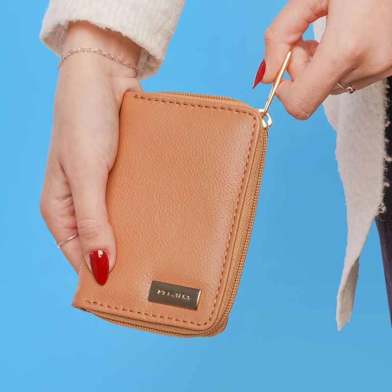 Carteira Pegada Feminina em Couro Caramelo CA001303-02