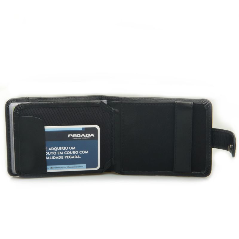 Essa carteira é confeccionada em couro, material de qualidade superior que confere alta durabilidade ao produto. Feito a mão, este modelo possui na sua parte interna 3 espaços porta cartões, 6 porta documentos, um espaço para moedas e outro para porta cheques ou documentos. A parte onde porta notas é forrado e este modelo conta com fechamento em botão. A medida dessa carteira fechada é de 12 cm de largura x 9,5 cm de altura.