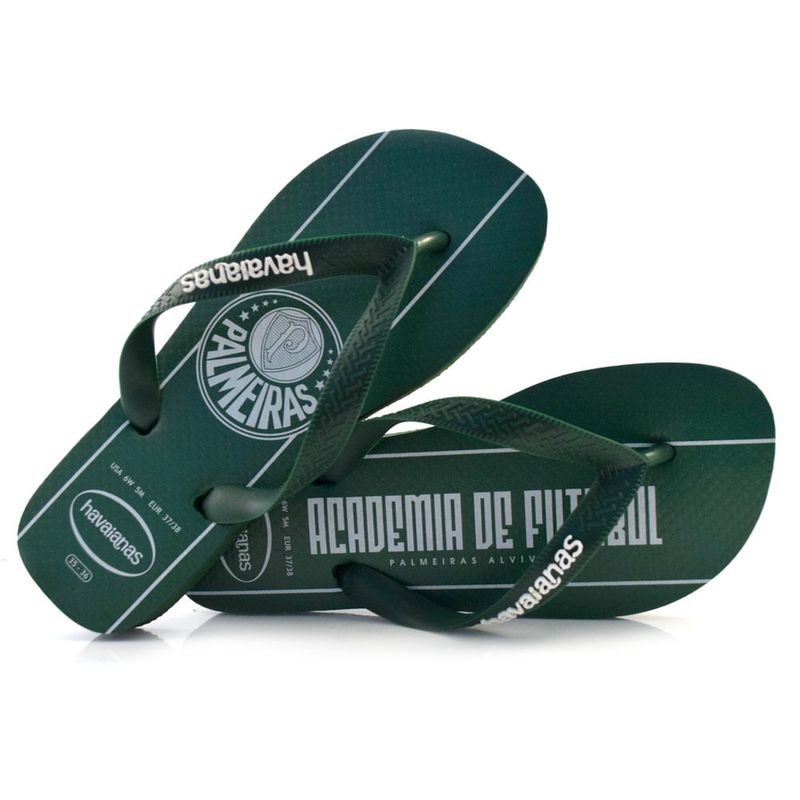 Chinelo Havaianas Palmeiras, confeccionado em material PVC expandido, com estampas do Palmeiras nas palmilhas. Ideal para ser usado em ocasiões do dia a dia e aquelas que pedem por mais conforto, passeios, praia, etc. Pode ser usado com vários looks, camisas de time, camisas lisas, bermudas. Aproveite e compre online. REF: 4148309 AD