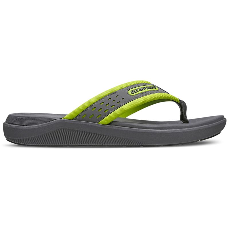 Olympikus 921 tem tira em laminado sintético, com aplicação de etiqueta emborrachada bicolor. Palmilha e solado em EVA, com tecnologia antiderrapante Gripper. TECNOLOGIA: GRIPPER: A tecnologia da Olympikus com borracha compacta antiderrapante e de alta resistência.