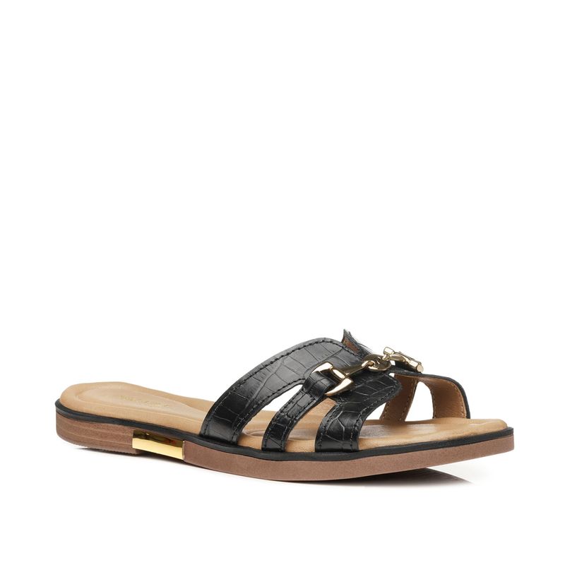 Chinelo Pegada Feminino em Couro Preto 233555-02