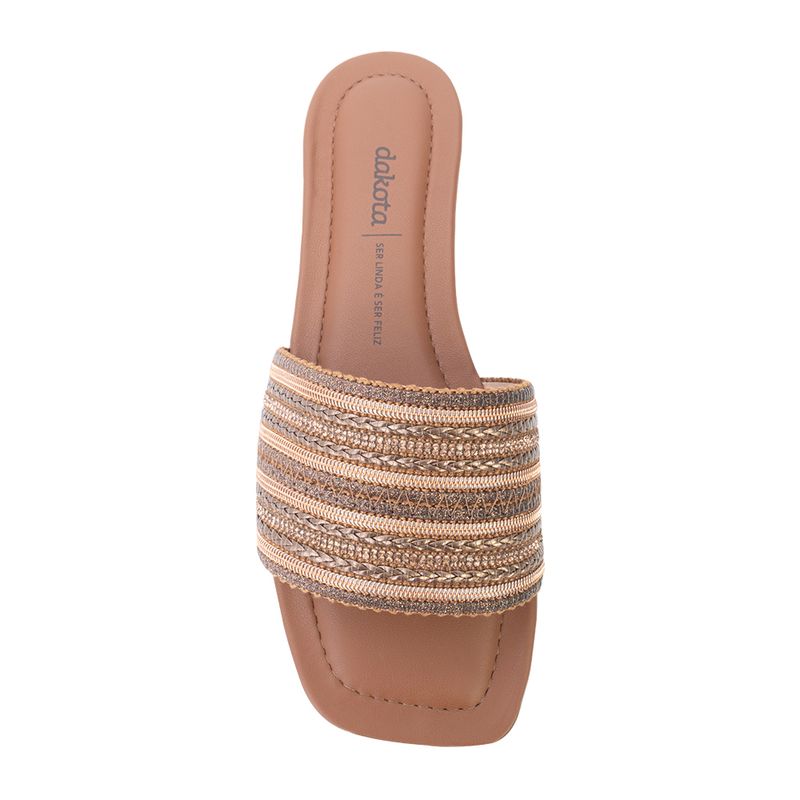O Chinelo Slide Dakota é ideal para quem busca um calçado prático, confortável e com um toque de estilo para os dias mais quentes. Com seu design atemporal e versátil, esse slide se adapta a diversas ocasiões e combina com diferentes looks. Seu bico quadrado e a tira larga e tramada, com detalhes metalizados e com brilho, conferem um ar moderno e sofisticado ao modelo. A trama, com uma pegada artesanal, adiciona um toque de originalidade e textura ao calçado. Já sua leveza e versatilidade são características marcantes, tornando-o ideal para o dia a dia e momentos de lazer. Seja para um passeio no parque ou para um happy hour com as amigas, o Slide Dakota é a escolha certa para quem busca um calçado que una conforto e estilo. Adquira já o seu!