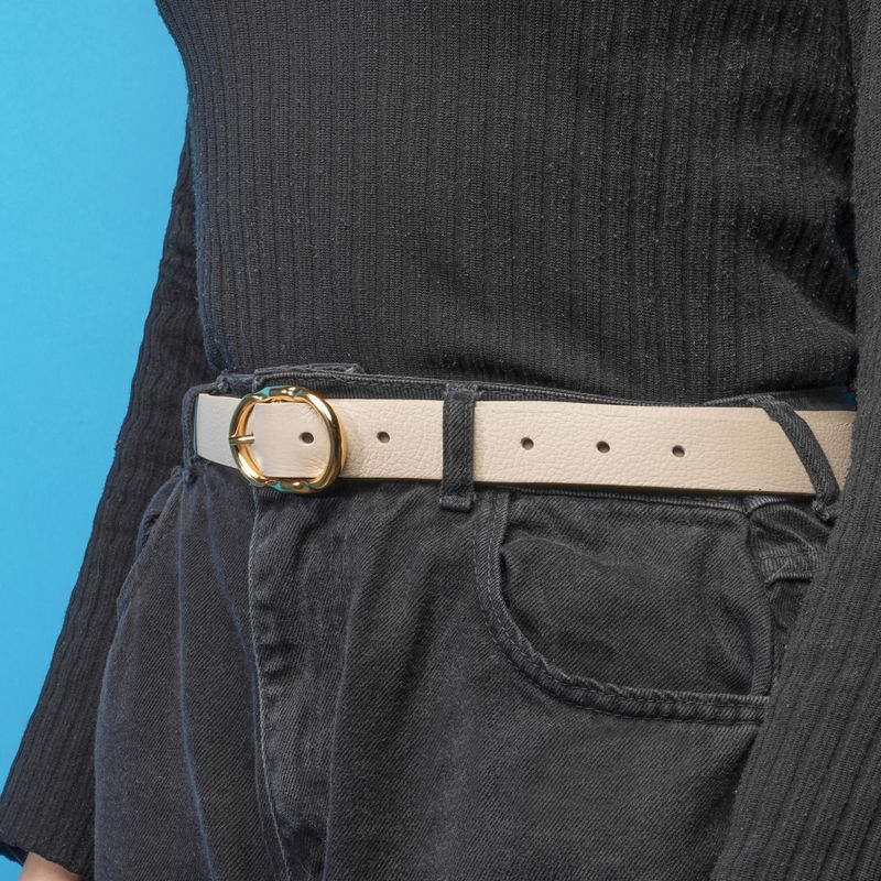 Esse cinto feminino em couro Off White é feito a mão. O couro é um material de qualidade superior que confere alta durabilidade ao produto e dá um toque de sofisticação aos looks. Ele tem 2,5 cm de largura e é perfeito para valorizar diferentes estilos de looks. A fivela arredondada em metal adiciona sofisticação e modernidade. Muito versátil, ele combina perfeitamente com calças jeans, sociais, vestidos ou para marcar a cintura em sobreposições. Um acessório atemporal que une praticidade e estilo, indispensável no guarda-roupa feminino.