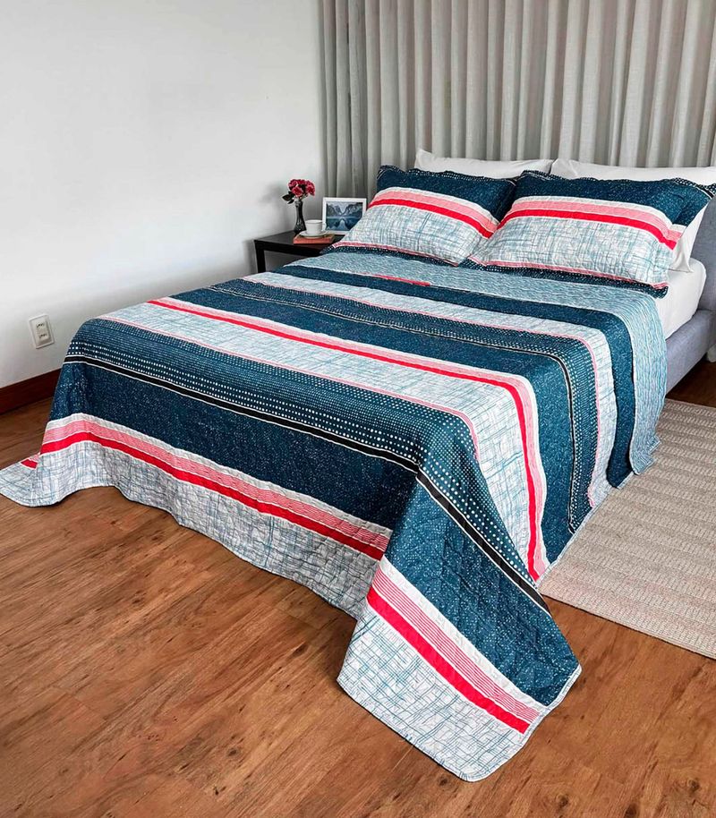 Cobreleito Queen Estampado Dupla Face Lepper Azul