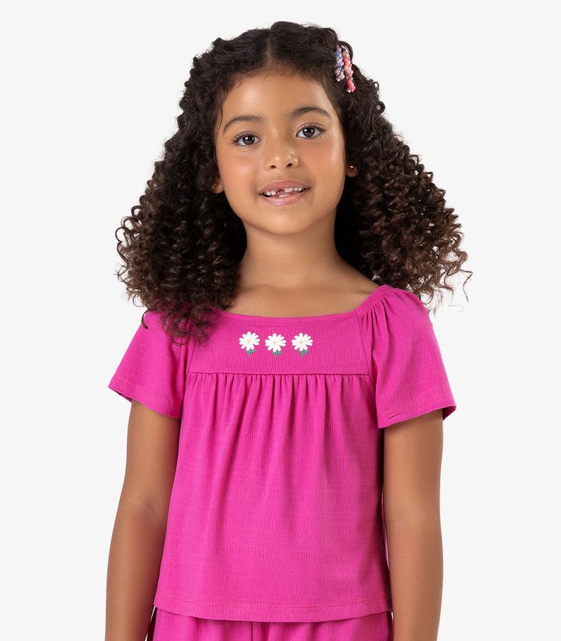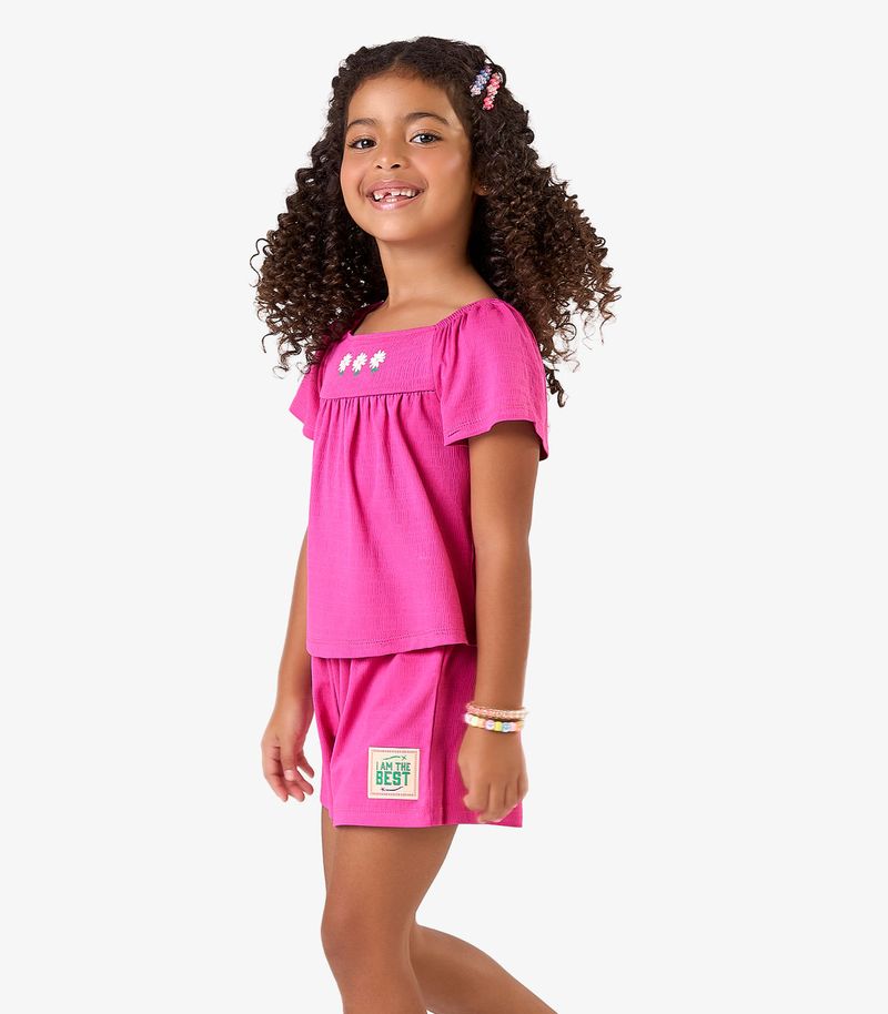 InfantilMeninaRoupasConjuntoConjunto Blusa c/ Shorts Visco Maquineta Rovi Kids Rosa