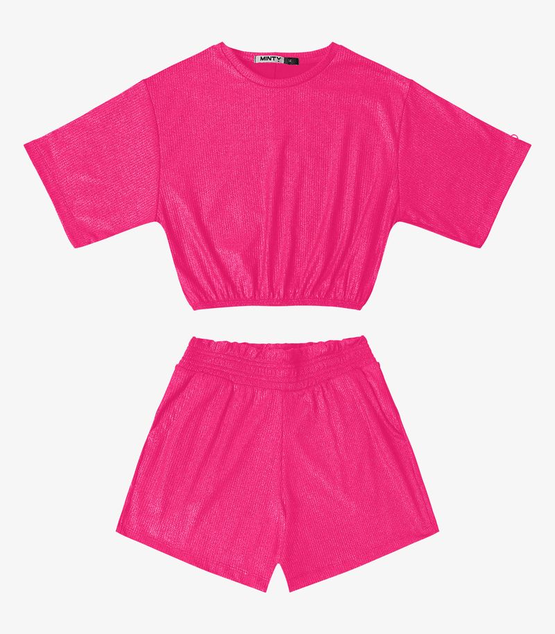 Conjunto Blusa Com Shorts Feminino Minty Rosa