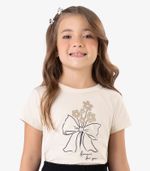 Conjunto infantil composto por blusa e shorts em Meia Malha Visco Maquinetada, tecido leve e confortável. A blusa tem estampa delicada de laço com flores, acabamento com costura dupla na barra e nas mangas, além de etiqueta nas costas. O shorts possui cós com elástico largo para ajuste ideal, recorte com detalhe franzido na barra que dá charme à peça, e acabamento reforçado. Um look fofo, prático e confortável para o dia a dia.
