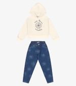 O conjunto infantil combina conforto e estilo, com um blusão de moletom macio, capuz aconchegante e detalhes encantadores, como estampa com glitter e bordados de lantejoula. A calça jeans complementa o look com um delicado processo de lavanderia a laser, formando desenhos de flores. Possui bolsos frontais e traseiros, cós com elástico para melhor ajuste e braguilha funcional com zíper. Perfeito para diversas ocasiões, esse conjunto une praticidade, charme e conforto para as crianças.