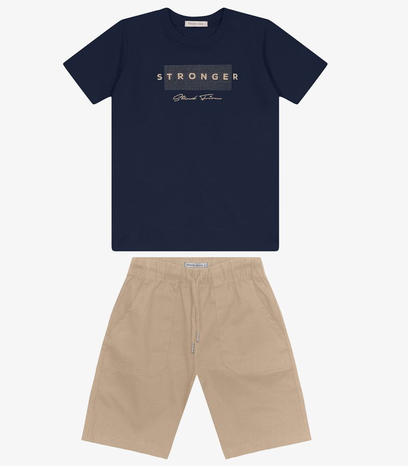 Conjunto Infantil Trick Nick confeccionado em Meia Malha e Sarja Twill, leve e delicado. Possui estampa localizada com EX. A cintura é franzida, trazendo volume e conforto, além de contar com um cordão decorativo. A barra tem bainha fina que valoriza o caimento. Ideal para ocasiões especiais com muito estilo e conforto.