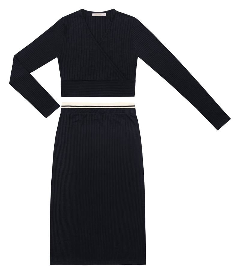 O Conjunto Feminino Blusa Com Saia Endless é uma combinação elegante e versátil para diversas ocasiões. Feito em ribana canelada, proporciona conforto e estilo. A blusa apresenta um decote em friso e um charmoso transpasse frontal, enquanto a barra dupla adiciona um toque de sofisticação. Já a saia conta com cós com retilínea dupla e uma discreta abertura lateral, garantindo um visual moderno e feminino.