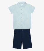 Conjunto infantil masculino, ideal para um visual moderno e confortável. A camisa é confeccionada em meia malha, proporcionando um toque macio e leve, com fechamento por botões e etiqueta da marca na barra, agregando um detalhe especial ao design. A bermuda, feita em sarja, é resistente e funcional, com bolsos laterais e traseiros com fechamento por botões. O cós com elástico, fechamento por botão e braguilha semi funcional garantem um ajuste seguro. Perfeito para diversas ocasiões!
