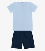 Conjunto infantil masculino, ideal para conforto e estilo nos dias de brincadeira. A camiseta, confeccionada em malha favo, proporciona leveza e frescor, destacando-se pela gola portuguesa e um prático bolso, que adiciona funcionalidade ao design. A bermuda, feita em sarja twill, é resistente e prática, contando com bolsos laterais embutidos e dois bolsos traseiros para guardar pequenos objetos. O cós com elástico e cadarço funcional oferece um ajuste confortável e seguro. Com a etiqueta da marc