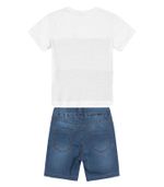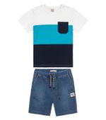 O Conjunto Infantil Camiseta Com Bermuda Trick Nick é a escolha perfeita para um visual moderno e confortável. A camiseta, confeccionada em meia malha, apresenta um bolso e recortes que adicionam estilo e personalidade. Com três cores vibrantes disponíveis, permite variar o look. A bermuda, feita em light denim com elastano, oferece conforto com seu cós embutido e elástico, além de bolsos laterais e traseiros funcionais. Este conjunto é a combinação ideal de moda e praticidade.