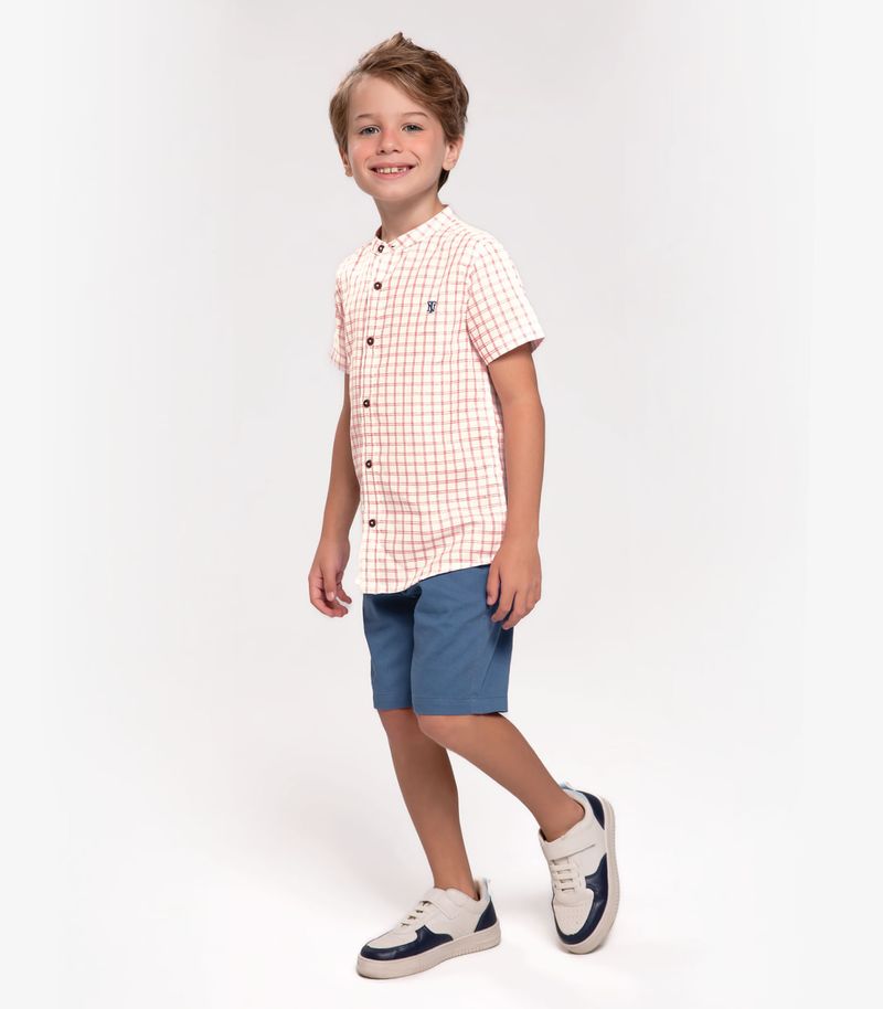 O Conjunto Infantil Masculino Xadrez Trick Nick combina estilo e conforto em uma peça versátil. Confeccionado em tecido fraldado fio tinto e sarja, oferece durabilidade e um toque agradável ao vestir. A camisa xadrez destaca-se pelo fechamento em botões, que facilita o uso e adiciona um toque clássico ao visual. A bermuda, com bolso lateral, oferece praticidade e espaço para pequenos objetos. Ideal para ocasiões casuais, este conjunto une charme e funcionalidade para os pequenos.