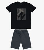 Conjunto Infantil Trick Nick confeccionado em Cotton Leve e Sarja Twill, leve e delicado. Possui estampa localizada com EX. A barra tem bainha fina que valoriza o caimento. Ideal para ocasiões especiais com muito estilo e conforto.