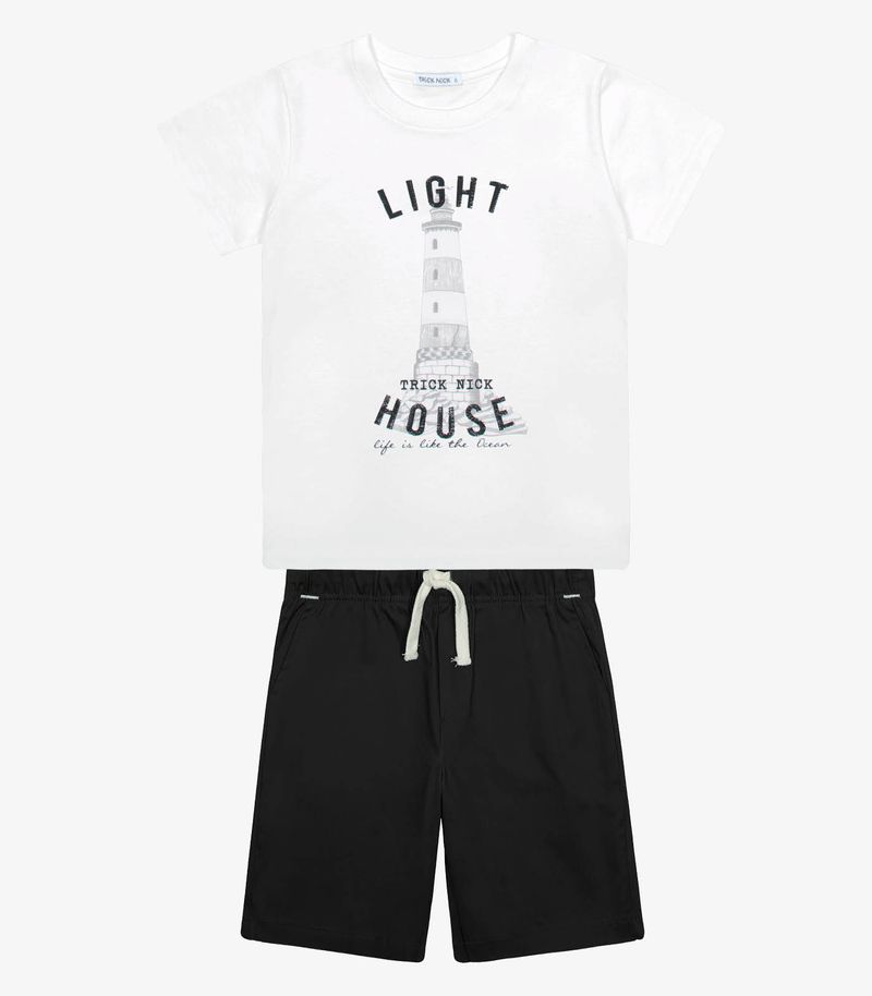 InfantilMeninoRoupasConjuntoConjunto Menina Camiseta Com Bermuda Trick Nick Branco