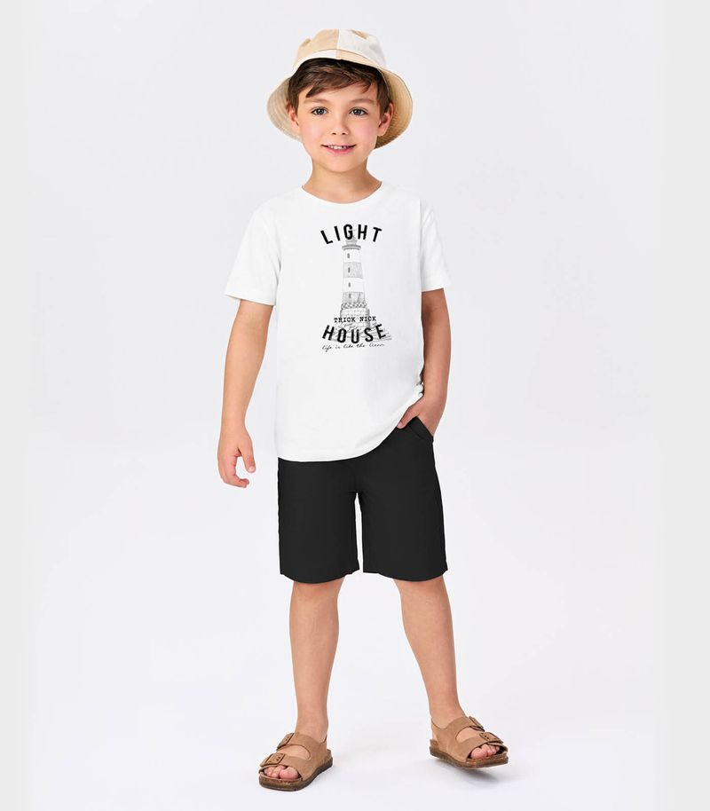 Conjunto Menina Camiseta Com Bermuda Trick Nick Branco