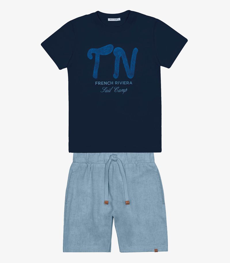 O Conjunto Menino Camiseta com Bermuda Trick Nick é a escolha perfeita para unir conforto e estilo. A camiseta, confeccionada em meia malha, possui estampa moderna e bordado chenille na frente, garantindo um toque especial ao visual. A bermuda, feita em linho strong, proporciona leveza e sofisticação, contando com cós elástico para um ajuste confortável e bolso lateral embutido para mais praticidade. Ideal para diversas ocasiões, esse conjunto combina charme e liberdade de movimento.