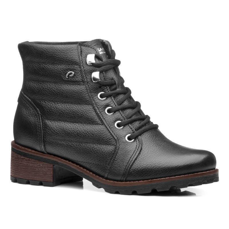 Esse coturno em couro preto é super estiloso. Essa bota é feita com a nossa tecnologia Soft Touch, onde cada detalhe é pensado para deixa-la extremamente macia, desde a matéria prima até os processos de produção. São muitos diferenciais, começando pelo forro, que é de tecido atoalhado e toque suave. A palmilha é macia, já o solado é de PU emborrachado, muito leve e flexível, com um saltinho tratorado de 4,5 cm, que ainda proporciona aderência ao chão para dar segurança ao caminhar. Além de tudo isso, as costuras utilizadas na sua produção são programadas (automáticas), assim não é necessário usar cola entre as partes do couro do cabedal, desta forma o couro continua com a sua maciez original e não fica endurecido. Tudo isso para deixar o calçado macio e confortável para o uso. Sinta esse conforto você também.