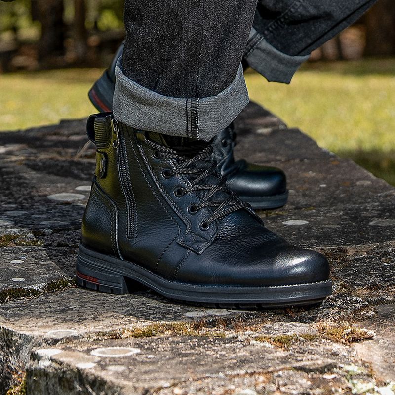 Essa bota em couro preto da linha Everest é robusta e muito confortável. O forro é de tecido atoalhado e toque suave. O solado é leve e flexível. Já a palmilha é feita em material macio e possui a nossa Tecnologia de conforto AMORTECH, com um amortecedor que reduz os impactos na região do calcanhar. Além de tudo isso esse modelo ainda possui zíper na parte externa trazendo muita praticidade na hora de calçar.