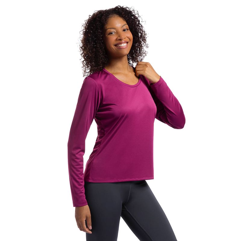 T-shirt manga longa feita de tecido leve, 100% poliéster, que não amassa e mantém seu corpo seco, além de protegido contra os raios UVA e UVB. Possui decote arredondado que mantém o colo protegido do sol e sua modelagem é levemente ajustada para uma sensação de conforto e liberdade. Conta ainda com mangas longas para uma maior cobertura do corpo e silk metálico em silicone, que acompanha o movimento de tecido. 100% Poliéster. Dry Action: Tecnologia que ajuda na absorção e eliminação do suor. É ideal para todo tipo de esporte, já que evita a aderência do tecido aocorpo, facilitando qualquer tipo de movimento. Solartech: Tecnologia desenvolvida para proteger o corpo dos raios UVA e UVB, que são nocivos à pele.