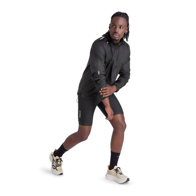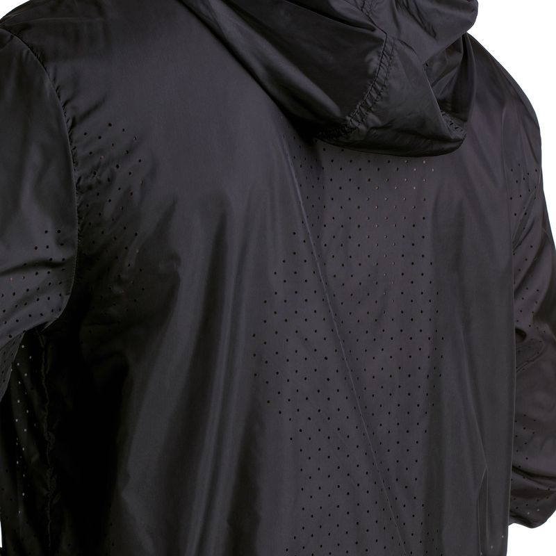 Para se proteger do vento com leveza e respirabilidade durante o corre. Confeccionada em tecido leve de poliamida com tecnologia WIND PROTECTION, que bloqueia a entrada de vento e ajuda a manter o conforto térmico. Furos a laser posicionados em regiões estratégicas aumentam a ventilação sem comprometer a proteção. Capuz e mangas com elástico, barra ajustável e zíper frontal com trava e acabamento em zipper garage, que evita atrito com o corpo. Bolso localizado no ombro direito, funcional tanto para carregar objetos pequenos quanto para embalar a peça no modo packable. Logos refletivos garantem visibilidade em ambientes com pouca luz.