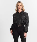 FemininoRoupasCasacos e JaquetasJaqueta Feminina Bomber PU Hansez Preto