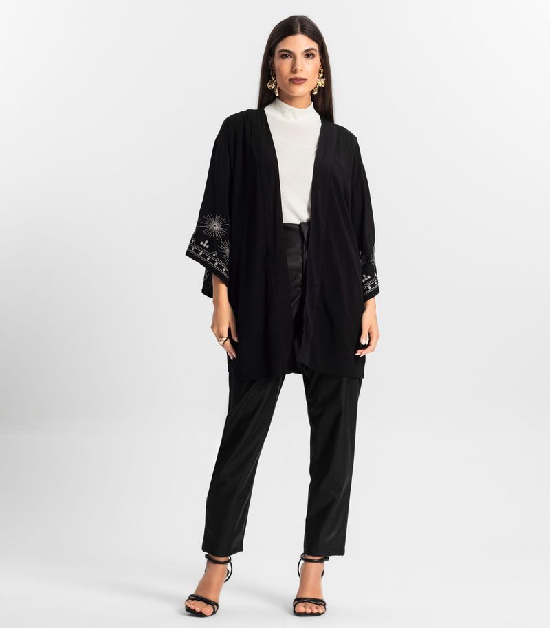 O Kimono Feminino Endless é uma peça sofisticada e cheia de charme. Confeccionado em viscose Khyara, um tecido leve e fluido, proporciona conforto e frescor. Seus detalhes em bordado delicado nas mangas adicionam um toque de elegância à peça, tornando-a perfeita para compor looks casuais ou mais refinados. Versátil e moderna, o kimono é ideal para diversas ocasiões, garantindo estilo e sofisticação com um visual único e atemporal. Uma escolha essencial para o guarda-roupa feminino.