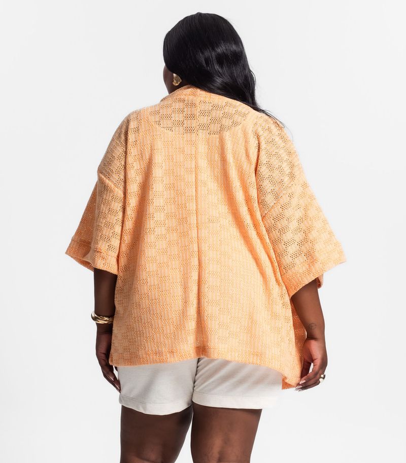FemininoRoupasPlus SizeCasacos e JaquetasKimono Feminino Plus Size Em Tricot Secret Glam Laranja