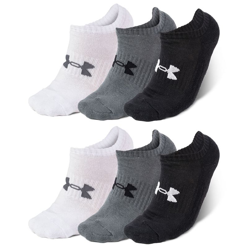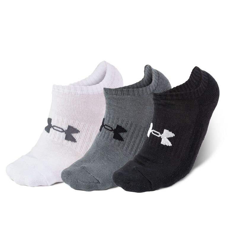 Meia de Treino Unissex Under Armour Cotton NS - Pacote com 3 pares, modelo com suporte de arco incorporado em sua estrutura, ajuda a reduzir a fadiga dos pés. TAMANHOS: P = 32-35 | M = 36-40 | G = 41-44 | GG = 45-49 | COMPOSIÇÃO: 73% Algodão, 25% Poliéster e 2% Elastano.