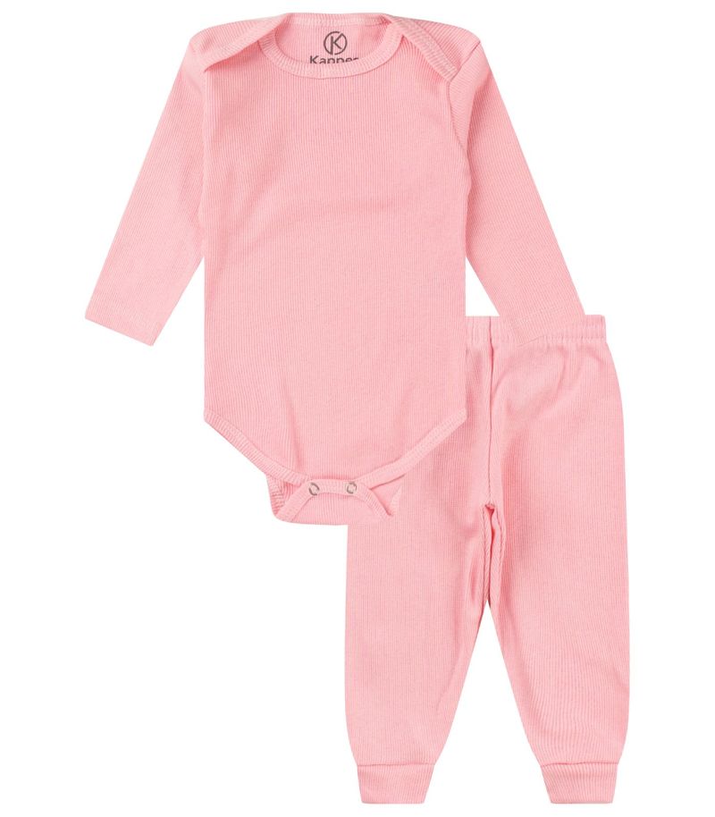 Kit Body Bebê Canelado 2 Peças Kappes Rosa
