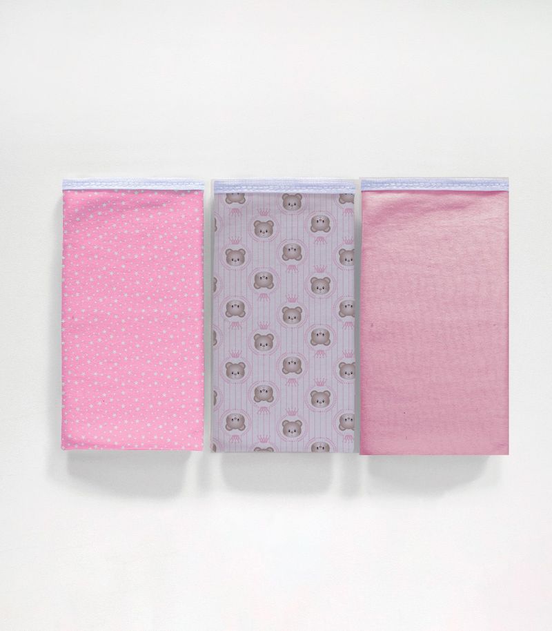 Kit Panos de Boca 3pçs. Desenvolvido em 100 % algodão, malha fio 30/1 penteado,120gm. Com 3 peças. Dimensões: 30x30cm Um item indispensável, o kit de fralda do baby!