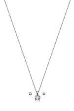 Este sofisticado kit é a combinação perfeita de elegância e praticidade. Inclui um colar e brincos ponto de luz que adicionam um toque de brilho sutil e refinado. O relógio, com sua caixa pequena em metal, se ajusta bem a todos os tamanhos de pulso, destacando-se pela sua numeração completa e um encantador detalhe de coração no ponteiro dos segundos. A pulseira em material sintético preto, com fecho de fivela, oferece conforto e um ajuste seguro. Ideal para complementar qualquer look com um toque de classe e estilo.