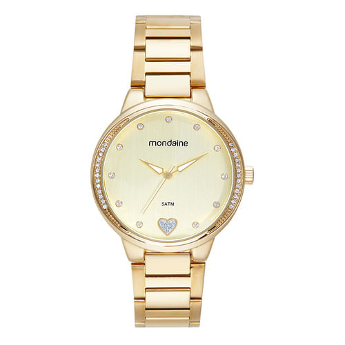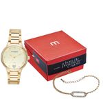 Kit especial composto por um bracelete adornado com cristais. O relógio apresenta um mostrador com efeito de aço escovado, detalhe de coração e caixa cravejada de cristais. Com caixa de metal e pulseira de aço, o relógio é ajustável a todos os tamanhos de pulso, tornando-o a escolha ideal para presentear