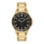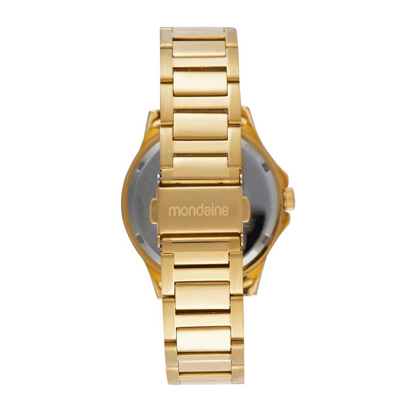 A pulseira de aço dourado complementa o visual luxuoso, oferecendo durabilidade e um brilho especial. O relógio conta com fundo de rosca e resistência à água de 5 ATM, unindo beleza e funcionalidade. Para completar o conjunto, o kit acompanha um colar delicado.