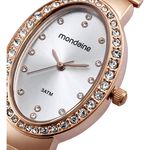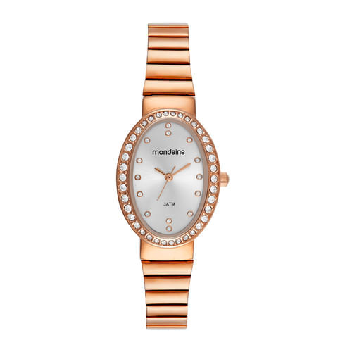 Este kit traz um elegante relógio analógico rosé com caixa oval, mostrador de efeito metálico e cristais na marcação e na caixa. Sua pulseira estreita estilo bracelete adiciona um toque delicado ao design. Acompanha um brinco cravejado com cristais, tornando-o a escolha perfeita para presentear com charme e sofisticação.