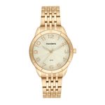 A numeração completa e as marcações na catraca reforçam o estilo clássico do relógio, enquanto a pulseira em aço acompanha perfeitamente o visual refinado.