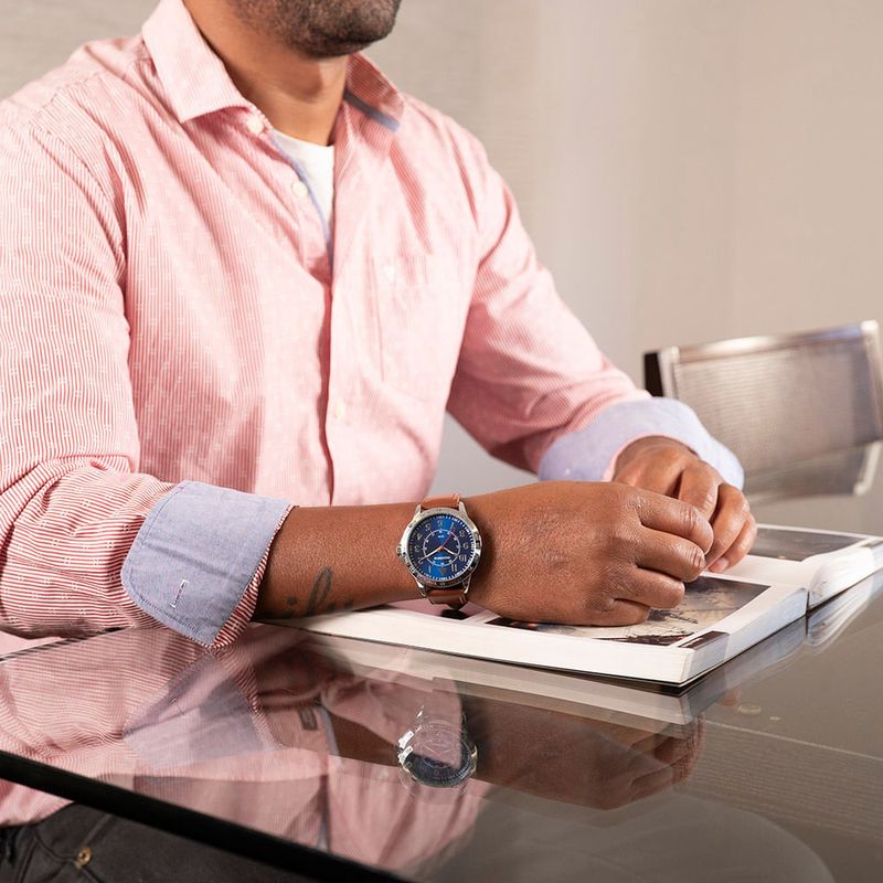 Este kit é a escolha perfeita para um presente especial. Inclui um relógio analógico com visor azul vibrante e uma caixa de metal cromada com 4,8 cm de diâmetro, proporcionando um ajuste confortável para todos os tamanhos de pulso. A pulseira em material sintético marrom, com fecho de fivela, combina resistência e conforto. O kit também vem com um cantil em aço cromado, portátil e sofisticado, complementando o presente com um toque de praticidade e estilo.