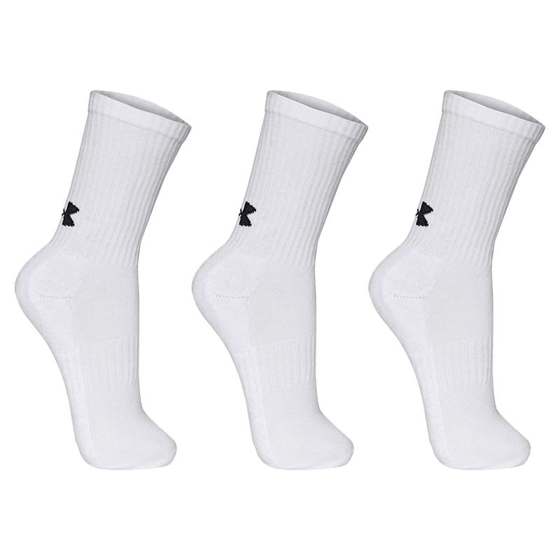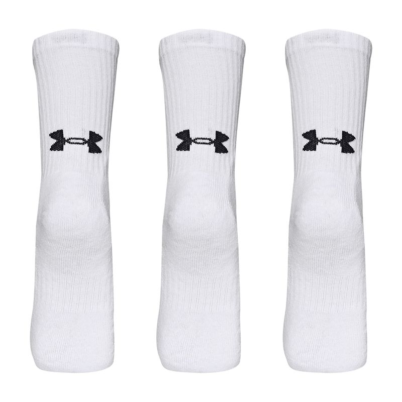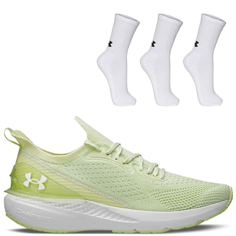 Tênis de Corrida Under Armour Charged Quicker e Confeccionado em gáspea retilínea bicolor com elastano, apresentando uma estrutura anatômica similar à de uma meia, se adaptando ao pé e facilitando o calce. Meia de Treino Unissex Under Armour Core Cotton Cano Alto - Pacote com 3 Pares, Meias com mistura de algodão macio trazem leveza e conforto, perfeitas para o uso diário. Suporte de arco embutido. Tamanho: M = 36-40.