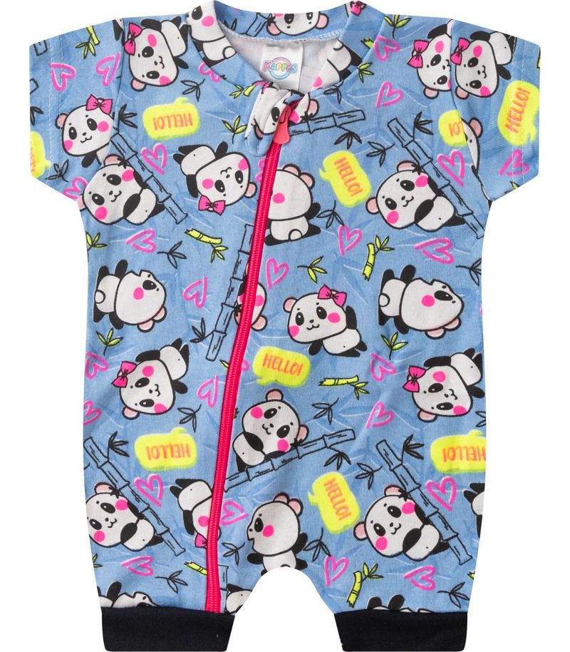 Macacão Bebe Curto Com Zíper Suedine Kappes Azul