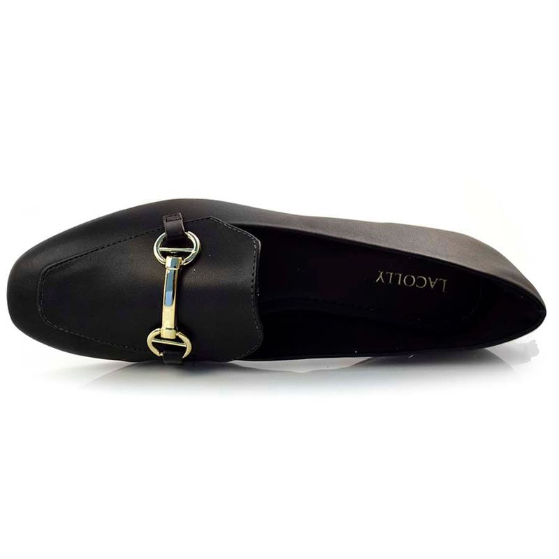 Mocassim Feminino Lacolly, confeccionado em napa sintética, com detalhe metalizado. O mocassim é um calçado clássico e moderno, ideal para ocasiões casuais e/ou formais, como uma reunião. Um look que combina com ele é calça de alfaiataria e camisa com acessórios dourados. Coleção: Outono/Inverno. Aproveite e compre online. Ref: 71009.
