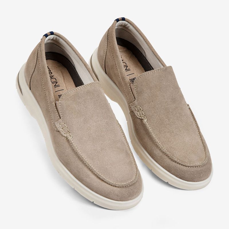 Em tom neutro e elegante, o mocassim masculino Ferracini Malta Pluss nude é feito em camurça macia que valoriza o design clássico do modelo. A palmilha em EVA forrada em tecido garante conforto prolongado, enquanto o solado em TR oferece estabilidade e leveza. Um mocassim casual versátil que combina facilmente com produções leves e modernas para qualquer ocasião.