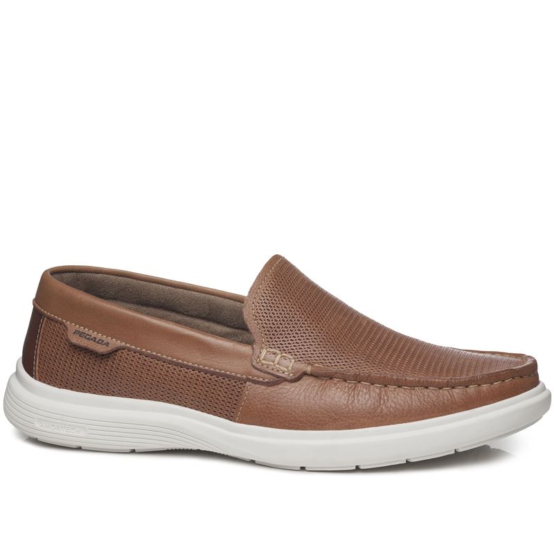 Esse mocassim em couro marrom da linha Navale é autêntico e despojado. O nome da linha significa "naval", em italiano, tudo por conta do shape marítimo e da inspiração na costa italiana, assim, o nome simboliza o perfeito equilíbrio entre conforto e estilo. Para envolver seus pés com muito conforto, esse modelo conta com a nossa tecnologia AMORTECH BLUE MEMORY FOAM, que é uma palmilha macia com um amortecedor na região do calcanhar que se adapta aos contornos dos pés e volta ao formato original, material que garante ainda menos impactos na pisada. Seu solado leve e flexível foi desenvolvido para proporcionar maior liberdade de movimento ao caminhar. Ideal para passeios, eventos descontraídos ao ar livre ou para usar no dia a dia esse mocassim é uma ótima escolha. Por onde for, o mundo te espera, com esse conforto da linha Navale".