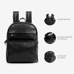 Essa é uma mochila preta que irá esbanjar estilo por onde você passar! Ela conta com compartimento para notebook de 14.5’’, é fabricado em couro legítimo, além de possuir bolsos internos e frontais.