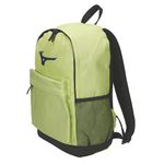 Mochila construída em tecido resistente e com aspecto rajado, possui bolso frontal para armazenar pequenos objetos e divisória interna no bolso principal. Mochila com bolso principal espaçoso, alças de ombro ajustáveis e confeccionadas com acolchoamento em mesh respirável para máximo conforto. Logo Mizuno em tamanho grande aplicado na parte frontal.