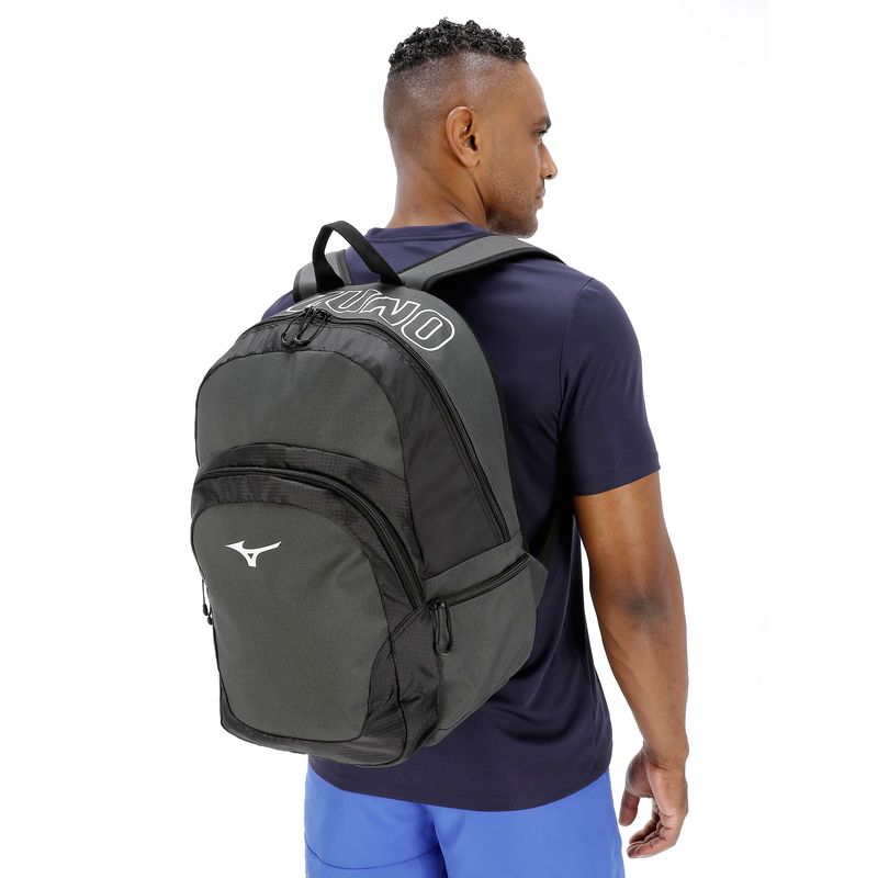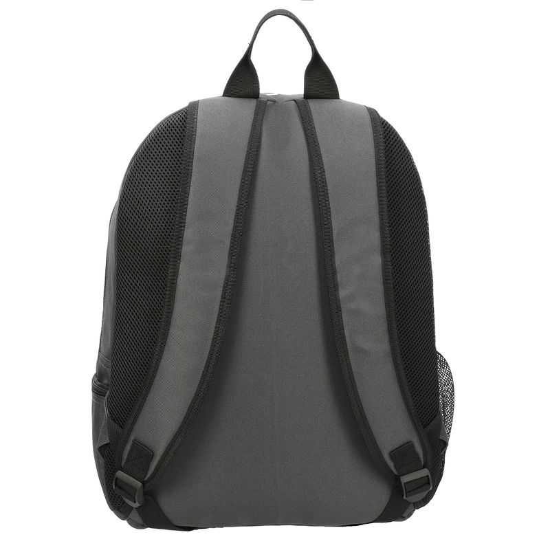 Mochila com costas e alças acolchoadas, Além do compartimento principal possui mais um bolso frontal e laterais. Logos estampados.