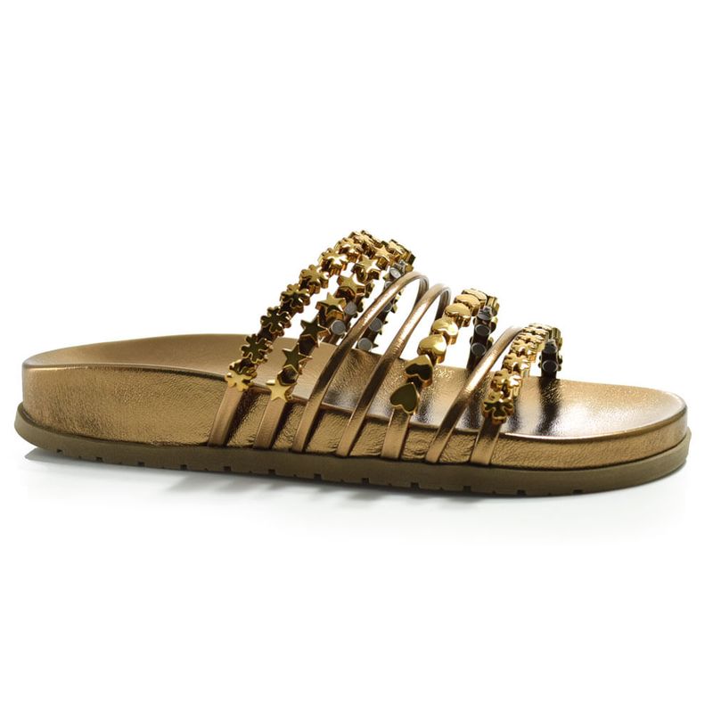Papete de Couro Feminina Suzzara, confeccionada em couro com detalhes metalizados e solado de borracha. Essa papete contém detalhes fofos e estilosos, sendo ideal para compor looks arrumadinhos e cheios de estilo, seja em ocasiões casuais ou passeios, dia a dia, entre outros. Coleção: Primavera/Verão 2025. Aproveite e compre online. Ref: 3800-11670.