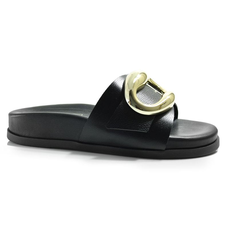 Papete de Couro Feminina Suzzara, confeccionada em couro, aplicação metalizada e solado de borracha. Essa sandália é prática, elegante e moderna, ideal para compor looks confortáveis e cheios de proposta de moda. Coleção: Primavera/Verão 2025. Aproveite e compre online. Ref: 1039-1925.