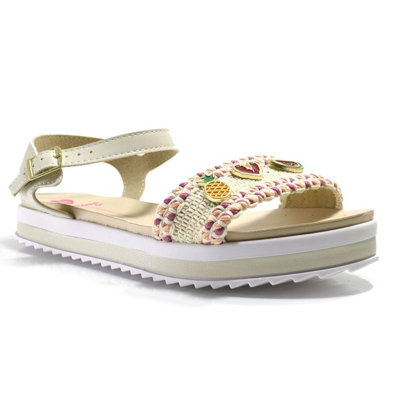 Papete Infantil Molekinha do 26 ao 34, confeccionada em material sintético, com fechamento regulável em fecho metalizado, detalhes no estilo corda e frutinhas, palmilha em EVA e solado de borracha. Essa sandália além de fofa é confortável e ideal para mini looks divertidos e fresquinhos. Coleção: Primavera/Verão 2026. Aproveite e compre online. Ref: 2305.1577.30984